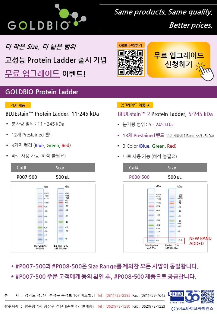 [Goldbio] Protein Ladder 무료 업그레이드! 지금 바로 신청하세요.